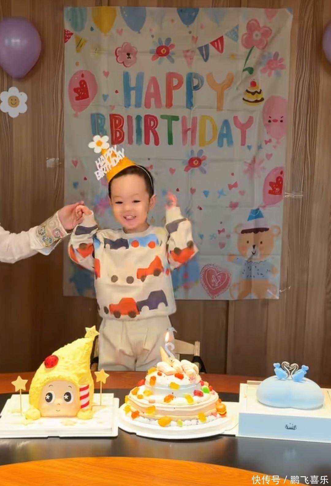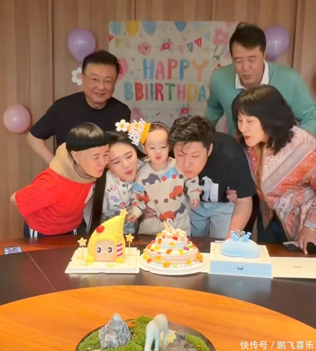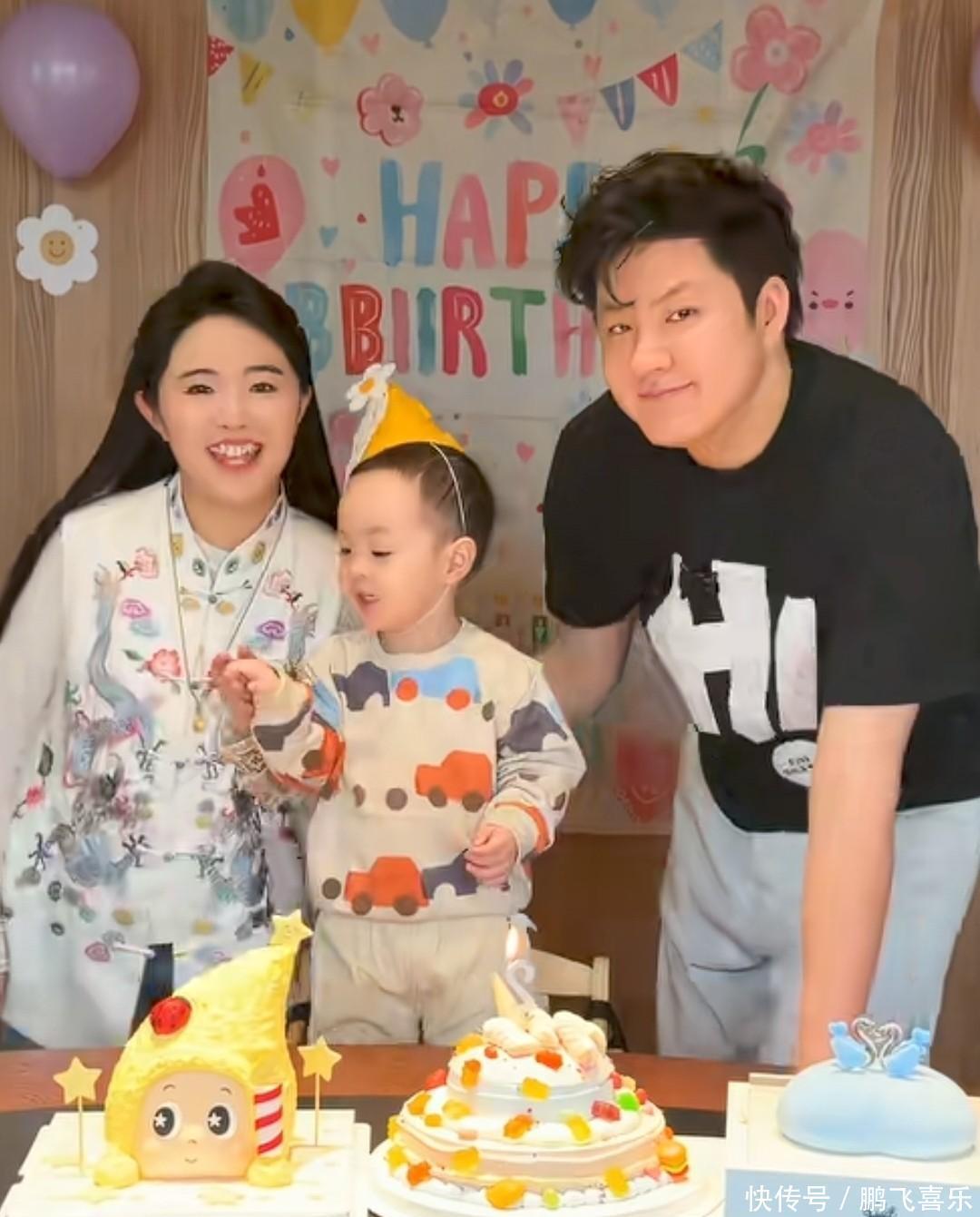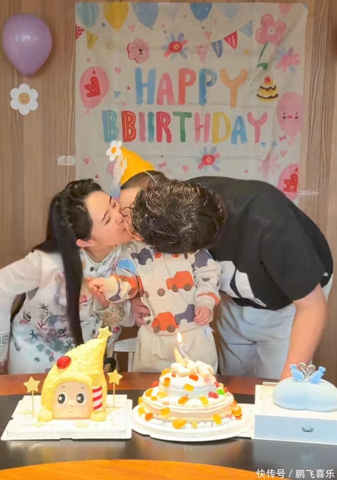 你看娃娃,一身中式打扮精致得很,妆容也在线,倒是老公大个儿刘青林显得随性多了,这两年看着还圆润了不少。这两人可是从13岁就认定的青梅竹马,十几年感情甜得像蜜一样,去年7月才补办婚礼,如今一家三口同框亲亲,那画面简直太暖了。桌上摆着三个大蛋糕,背景布、气球也都安排得明明白白,小家伙戴着生日帽站在椅子上,笑得眼睛都没了,真是被宠上了天。